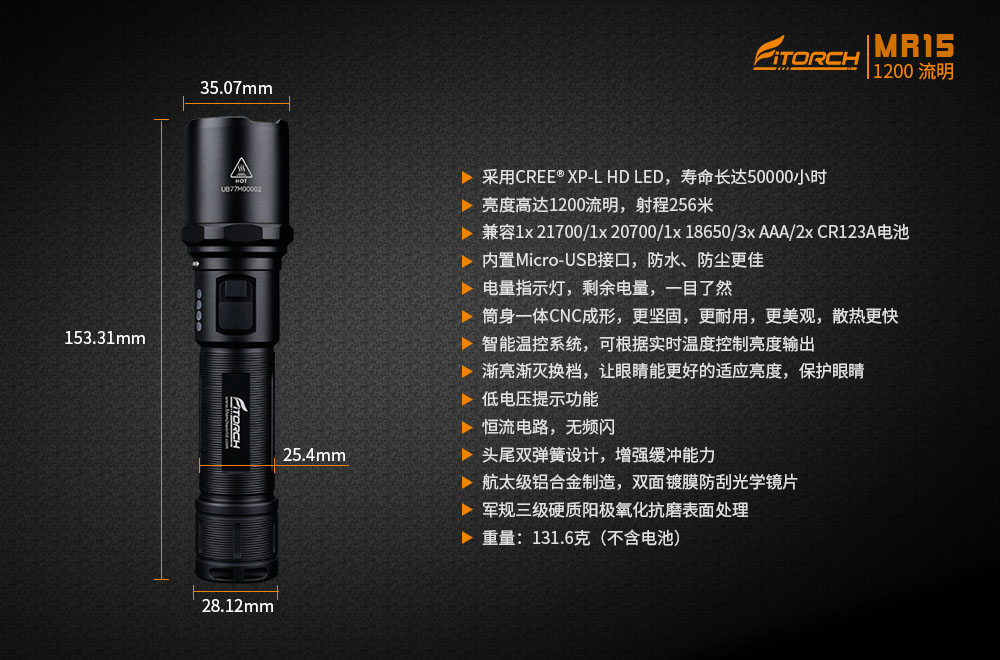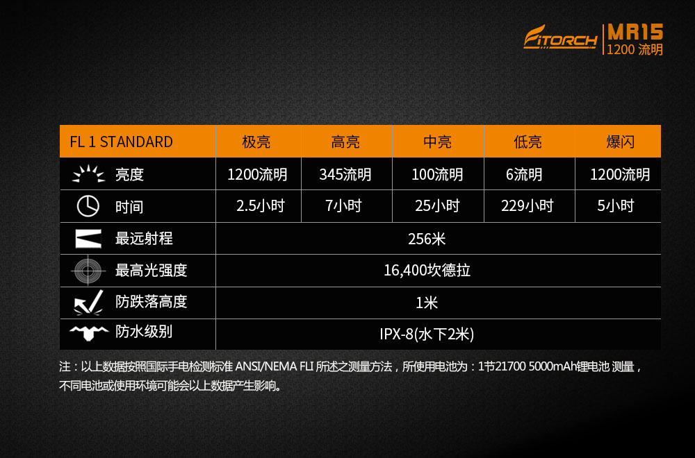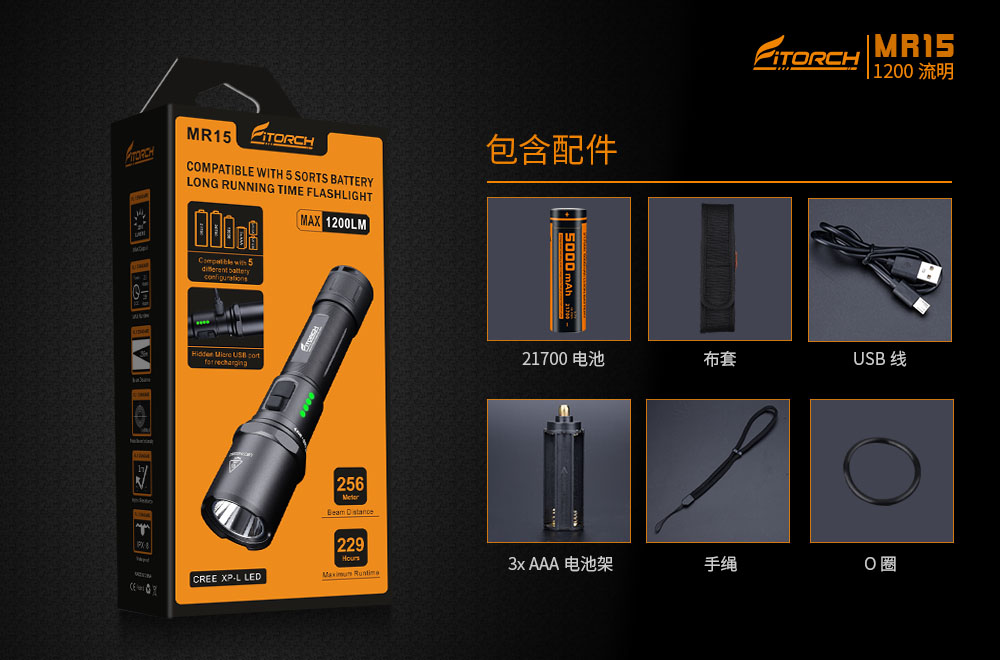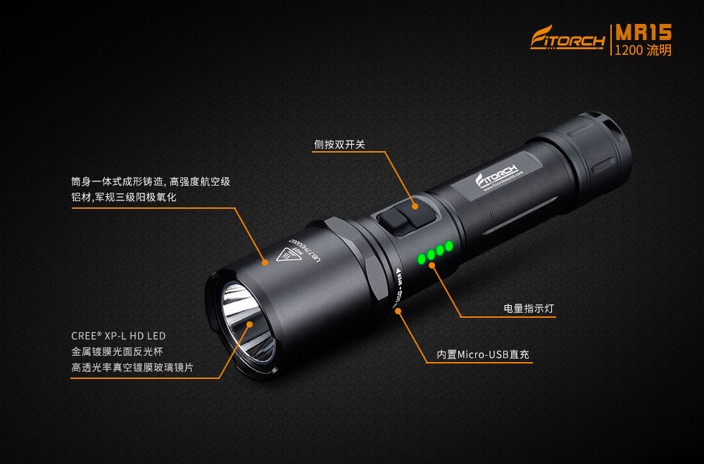 * 亮度高達1200流明,射程256米