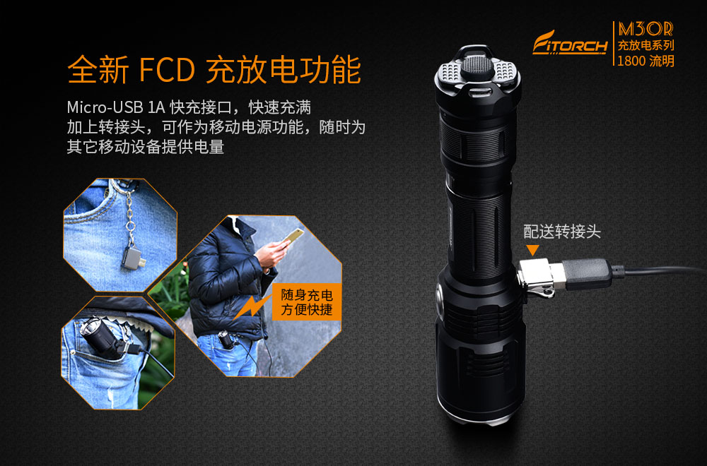 * 可應急給手機充電(當使用可充電鋰電池時)