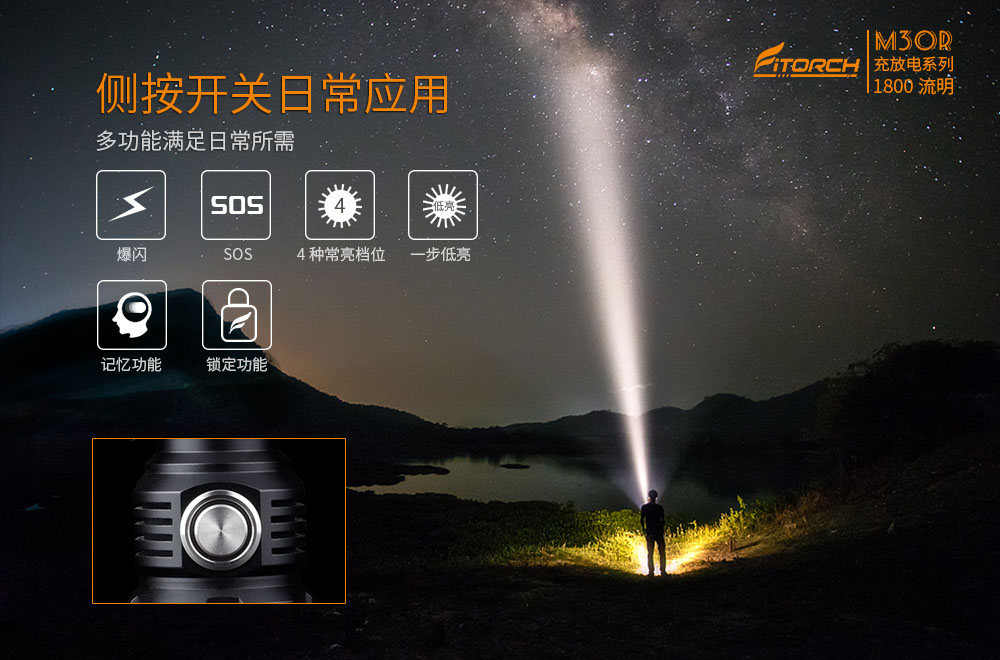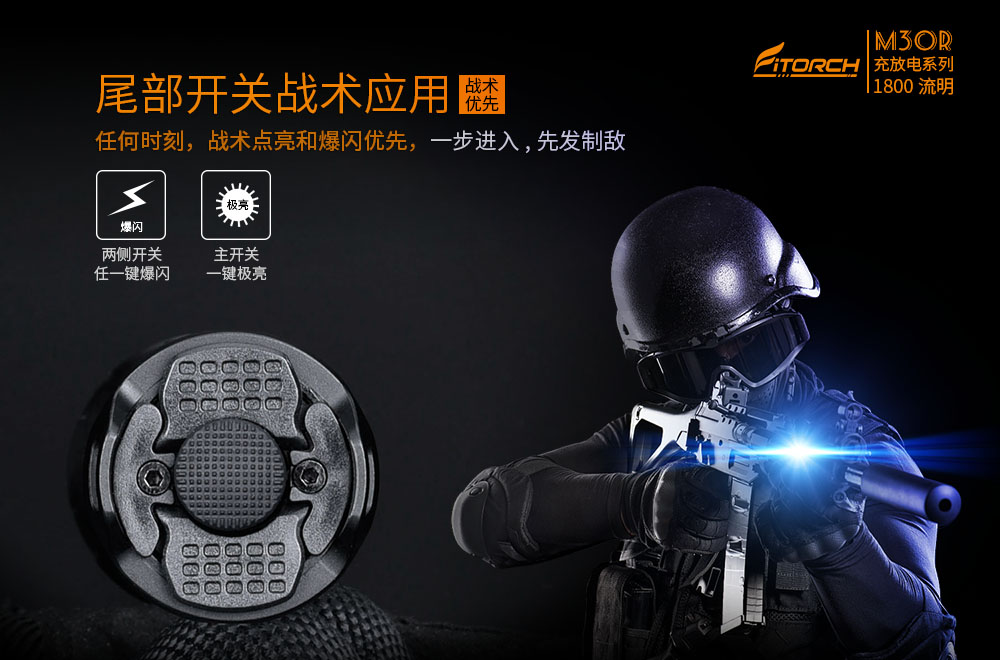 * 尾部開關戰(zhàn)術強光應用,側開關日常照明應用