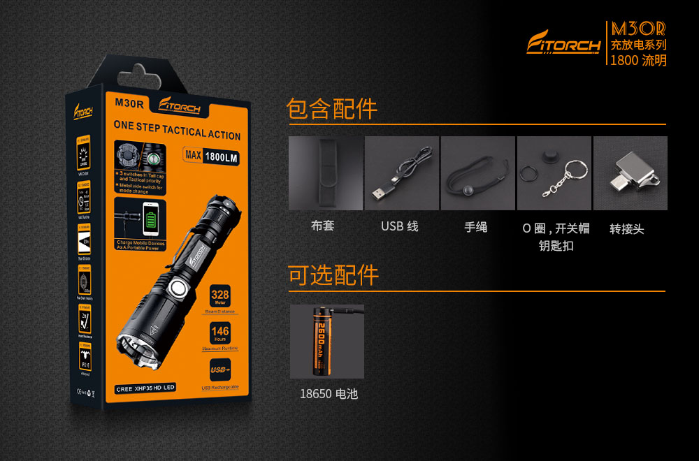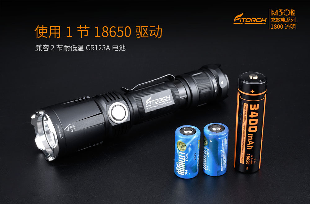 * 使用一節(jié)18650鋰離子電池或2節(jié)CR123A電池