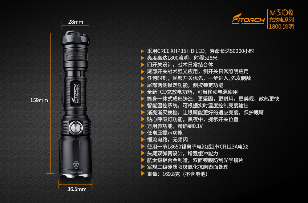 * 采用CREE XHP35 HD LED,壽命長達50000小時